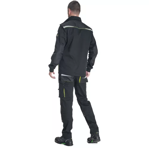 • férfi munkakabát, rendkívül tartós rugalmas anyagból • elöl cipzárral, védőfedéllel • 2 oldalzseb • 2 mellzseb, az egyik mobiltartó zsebbel • Oxford 600D megerősített váll- és könyökrészek • fényvisszavető elemek • kötött, elasztikus ujj mandzsetta