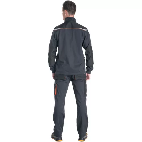 • férfi munkakabát, rendkívül tartós rugalmas anyagból • elöl cipzárral, védőfedéllel • 2 oldalzseb • 2 mellzseb, az egyik mobiltartó zsebbel • Oxford 600D megerősített váll- és könyökrészek • fényvisszavető elemek • kötött, elasztikus ujj mandzsetta