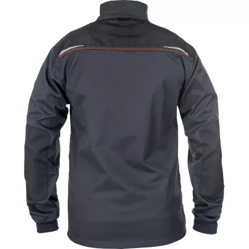 • férfi munkakabát, rendkívül tartós rugalmas anyagból • elöl cipzárral, védőfedéllel • 2 oldalzseb • 2 mellzseb, az egyik mobiltartó zsebbel • Oxford 600D megerősített váll- és könyökrészek • fényvisszavető elemek • kötött, elasztikus ujj mandzsetta