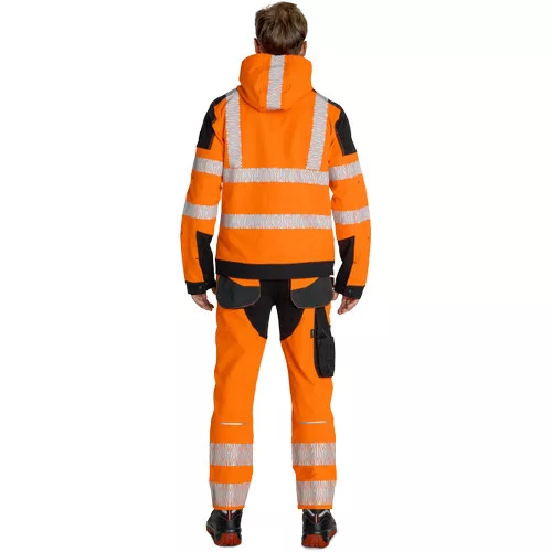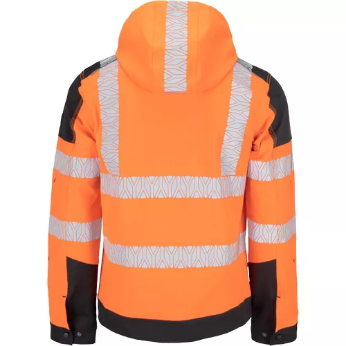 • jólláthatósági (HV) 4 irányban rugalmas poliészter szövet • szegmentált fényvisszaverő csíkok • számos praktikus zseb oldalt és elöl • levehető kapucni • textilerősítés vállrészen