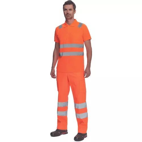 • férfi munkanadrág 7 cm széles fényvisszavető csíkokkal és HI-VIS elemekkel • 2 oldalsó zseb + 1 érmezseb • 2 oldalzseb • 2 hátsó zseb • rugalmas oldalsó betétek a derékon • meghosszabbítható szárhossz