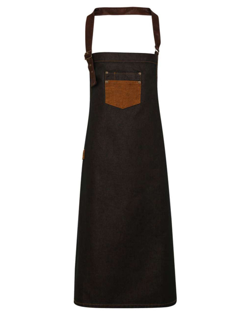 Premier PR136 'DIVISION' WAXED LOOK DENIM BIB APRON WITH FAUX LEATHER U