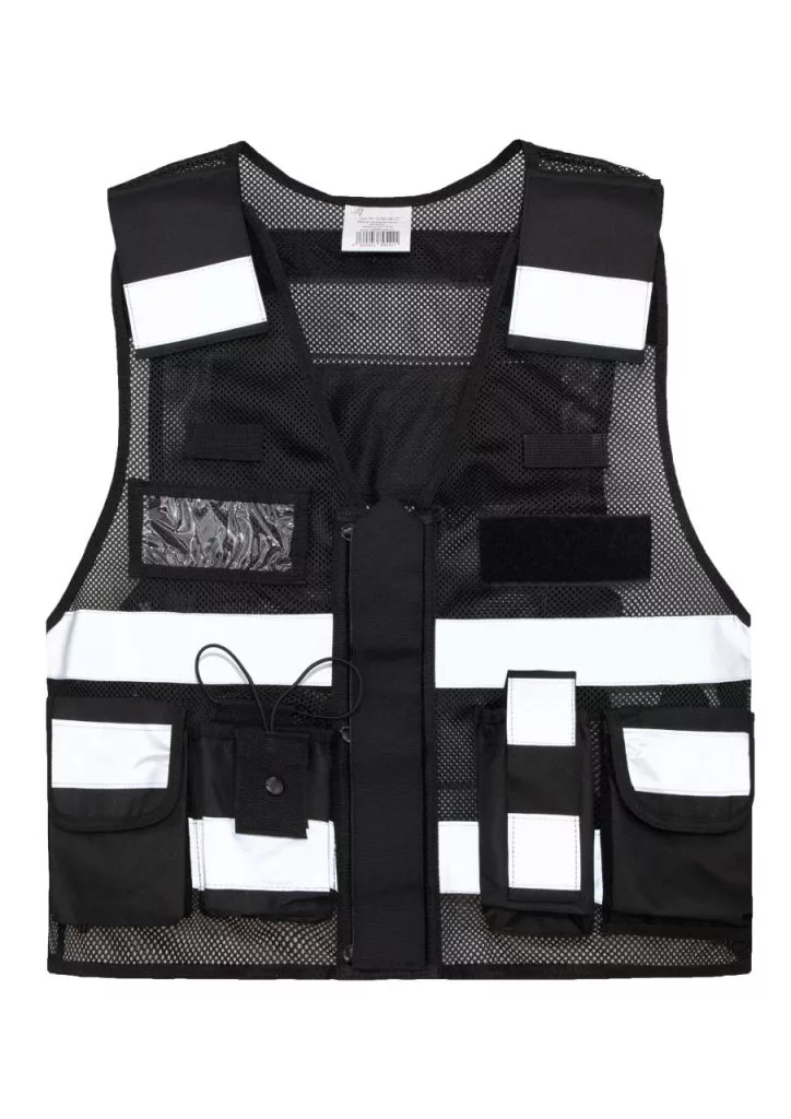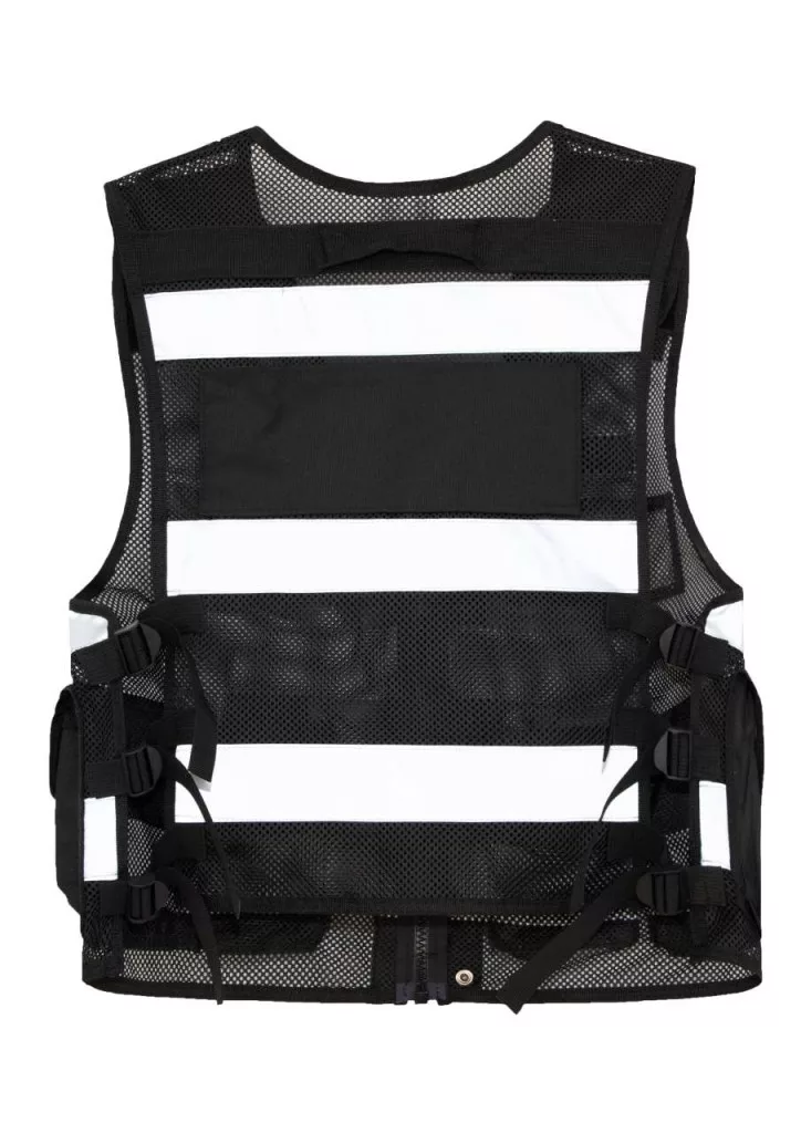 Stílusos hálós taktikai mellény feltűnő fényvisszaverő csíkokkal