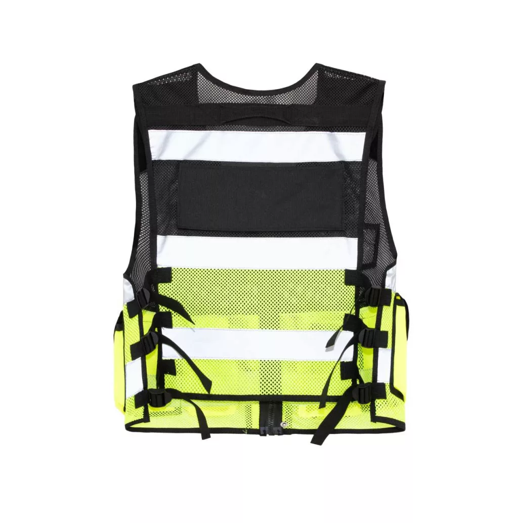 Stílusos hálós taktikai mellény feltűnő fényvisszaverő csíkokkal