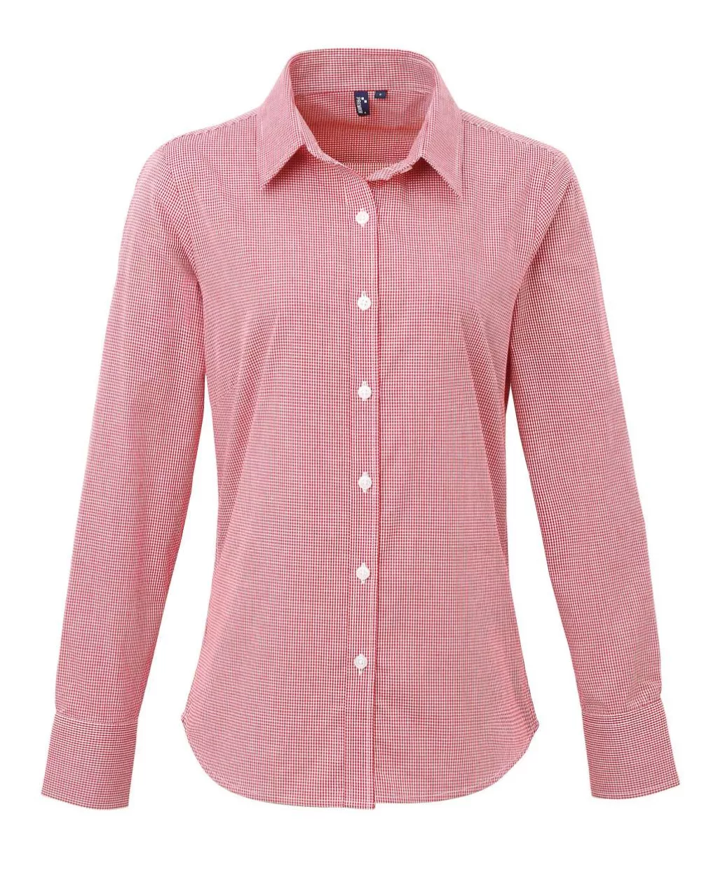 Premier PR320 WOMEN'S LONG SLEEVE GINGHAM MICROCHECK SHIRT S
